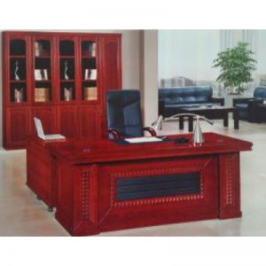 Mặt bàn chính hình chữ nhật kết hợp với chiếc tủ phụ tạo thành một chiếc bàn hình chữ L rộng rãi, mọi thứ đều nằm trong tầm tay người ngồi, tạo cảm giác an toàn và thể hiện được đẳng cấp của người sử dụng. Yếm bàn dài sát đất tạo sự tự tin, thoải mái cho người ngồi làm việc và nổi bật với những họa tiết trang trí sang trọng. Chân bàn được ghép hộp chắc chắn, tạo nên một cấu trúc bền vững.