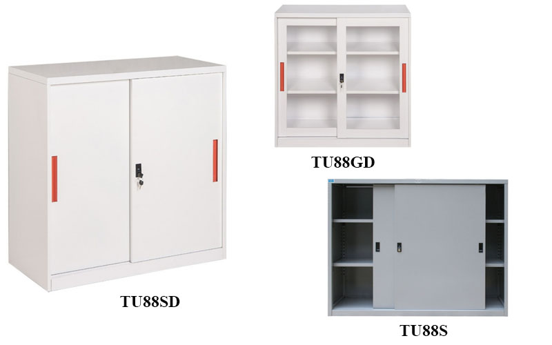 Tiếp theo, tủ TU88G với thiết kế tủ cánh lùa hiện đại. Hoạt động trơn tru dựa trên hệ thống ray bi, trượt linh hoạt mà không tạo tiếng ồn lớn. Mẫu tủ này còn có thể kết hợp, ghép với tủ TU88S nhằm gia tăng khả năng lưu trữ.