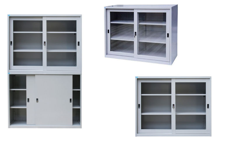 Kết cấu tủ bao gồm 3 ngăn chứa được phân bởi 2 đợt di động. Sử dụng cửa cánh kính lùa. Có tay nắm âm giúp đóng mở thuận tiện và khóa chìa đảm bảo độ bảo mật và an toàn cho đồ vật cất giữ bên trong.