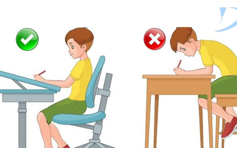 Lựa chọn bàn không đúng khiến trẻ ngồi với tư thế sai, gây gù lưng