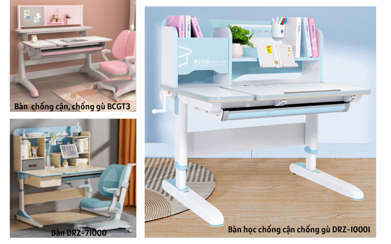 Bên cạnh đó bàn học thiết kế nhiều dạng tích hợp nhiều tính năng, hỗ trợ chống gù, chống cận, hỗ trợ cột sống, đảm bảo sức khỏe cho các bé khi học tập. Giúp các bé cảm thấy hứng khởi khi học, khi đó, chất lượng và kết quả học tập sẽ được nâng cao đáng kể.